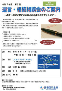 『令和7年度 第2回 遺言・相続相談会』 ≪事前予約制≫