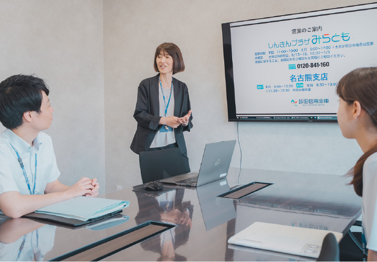飯田しんきんの将来を担う人材である新入職員の能力向上を図るプログラムでじっくり養成。