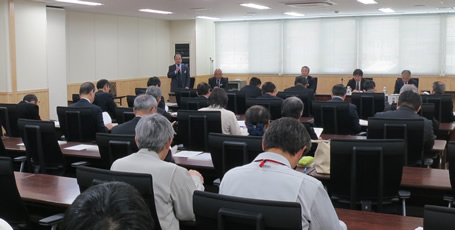 4月28日伊那市役所1階多目的ホールにおいて、上伊那地域および下伊那地域の県議会議員、行政、経済団体関係者の勉強会にお招きいただき、約50 名のご参加により、報告書について説明いたしました。